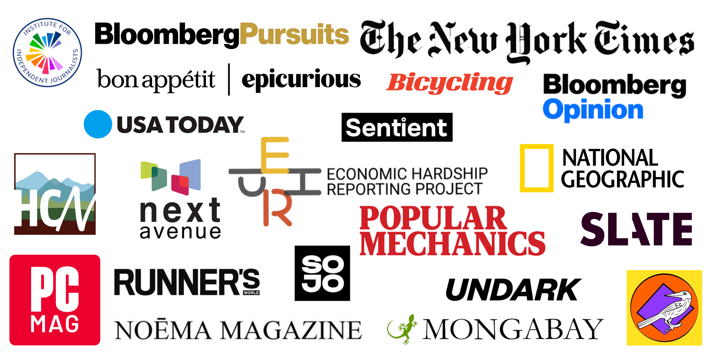 Our incredible bonus bundle, which includes IIJ-created pitch guides with rates and contacts for outlets featured in our previous webinars and podcast episodes, including the New York Times, National Geographic, Bloomberg, USA Today, Runner’s World, Slate, Bon Appétit, Undark, High Country News, Sojourners, the Sick Times, Next Avenue, and PCMag. In addition, get guides on funding your reporting through grants and fellowships, model contracts and budgets, and much more!